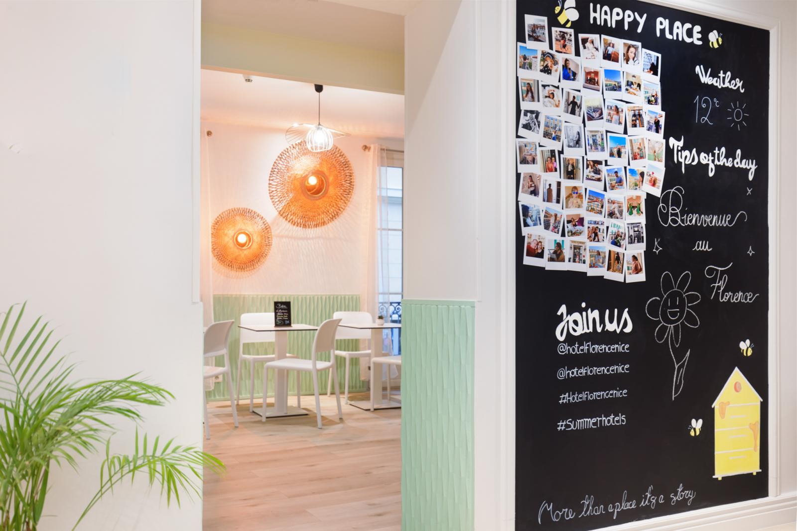 Buffet jeden Tag von 7:00 bis 11:00 Uhr im hellen Frühstücksraum der ersten Etage. Lassen Sie sich unsere Auswahl an „natürlichen“ Produkten (Müsli, Trockenfrüchte, Brot, glutenfreie Produkte, Honig „made in Nice“ von unseren eigenen Bienen auf dem Hoteldach) schmecken.